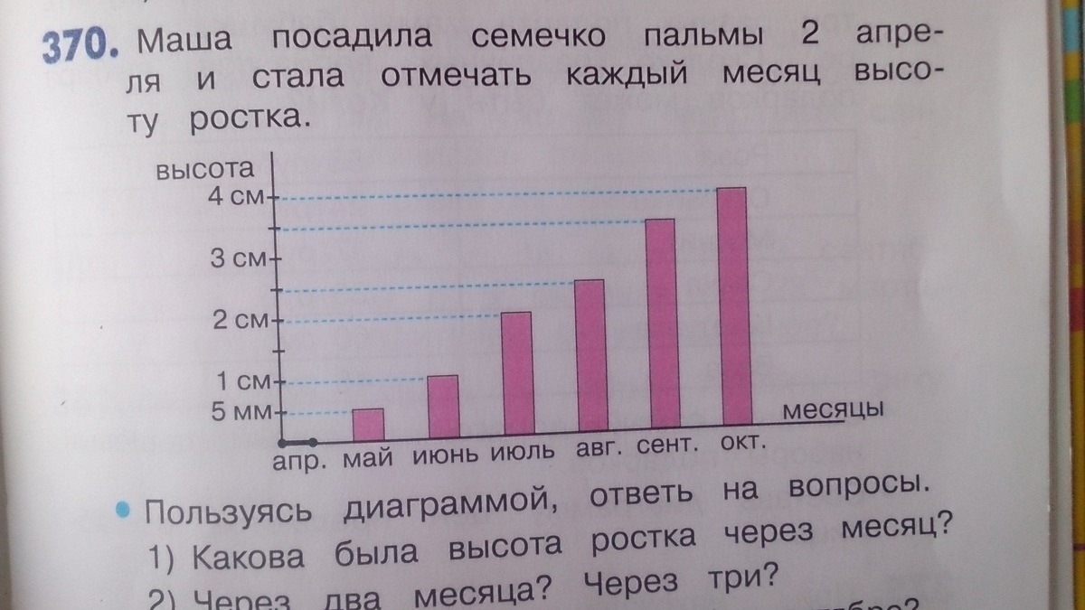 маша посадила семечко пальмы 2 апреля и стала отмечать каждый месяц высоту ростка.