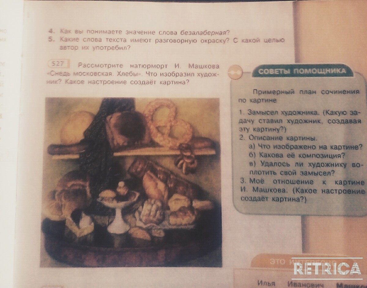Я вижу на этой картине очень много хлеба и очень аппетитных булочек. Здесь есть и рогалики, и пирожные с кексами. Тут видно что художник хотел изобразить может быть свлй голод или всегда мечтал бы поксть эти хлебобуллчные изделия. Настроение у художника наверное сладостное. Ведь от таких булочек никто бы не отказался. Но почиму-то и Машков изобразил эту картину в темном стиле.