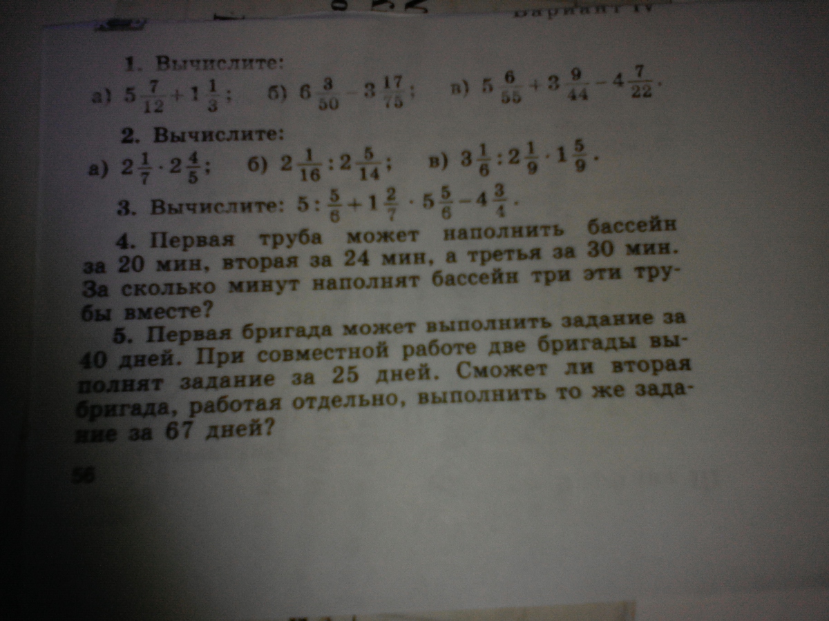 5:5/6+1 2/7*5 5/6-4 3/4=5*6/5+9/7*35/6-19/4=6+15/2-19/4=35/4