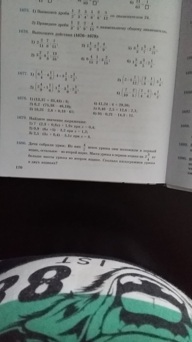 4/7 - 3/7 = 1/7 это на сколько больше урюка в первом ящике. Также сказано,что первый ящик весит на две целых три четвертых больше,чем второй.То есть,одна часть весит 11/4 кг (я перевел в неправильную дробь).Таких частей 7,значит надо 11/4 × 7