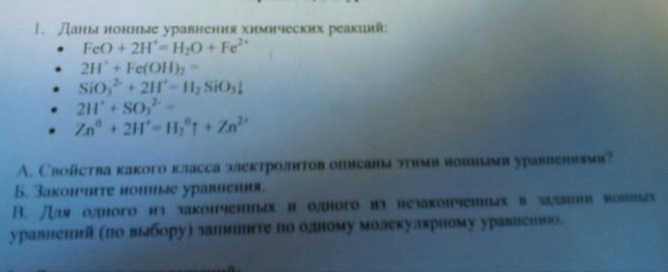 в) Для одного из законченных и одного из незаконченных в заданиях ионных уравнений(по выбору) запишите по одному молекулярному уравнению