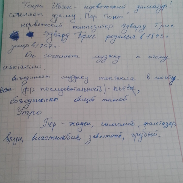 Норвежский композитор Эдвард Григ родился в 1843 году, умер в 1907 году. Он сочинил музыку к этому спектаклю. Объединяет музыку спектакля ... . (фр. последовательность) - пьесы, объединённые общей темой.