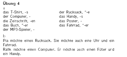 Пиа хочет рюкзак. Она также хочет часы и велосипед.