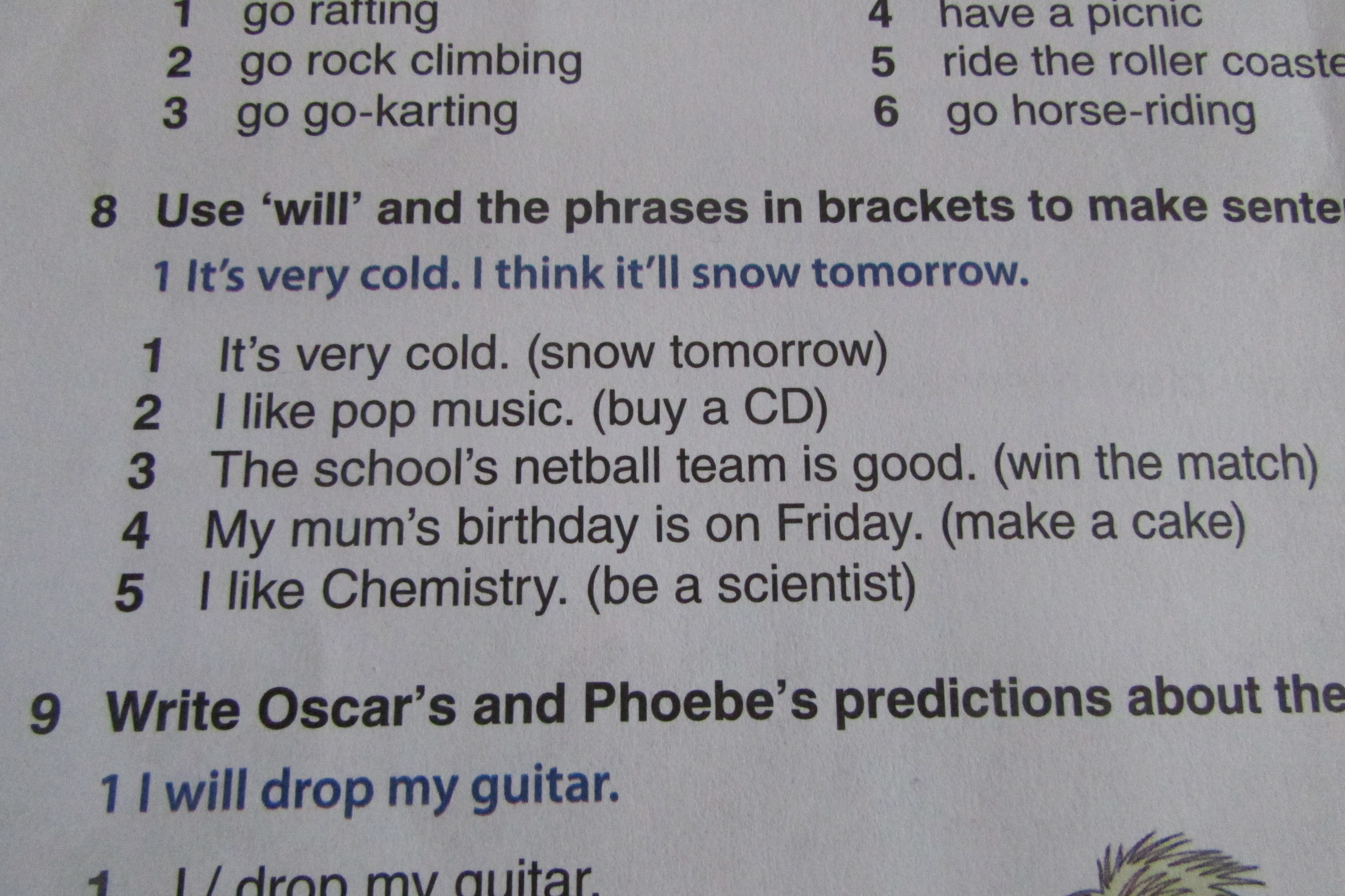 4. My mum`s birthday is on Friday. I think she will make a cake.
