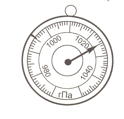 Между этими делениями 20 маленьких делений, отсюда делаем вывод что на одно маленькое деление приходится (1020 - 1000) / 20 = 1 гпа