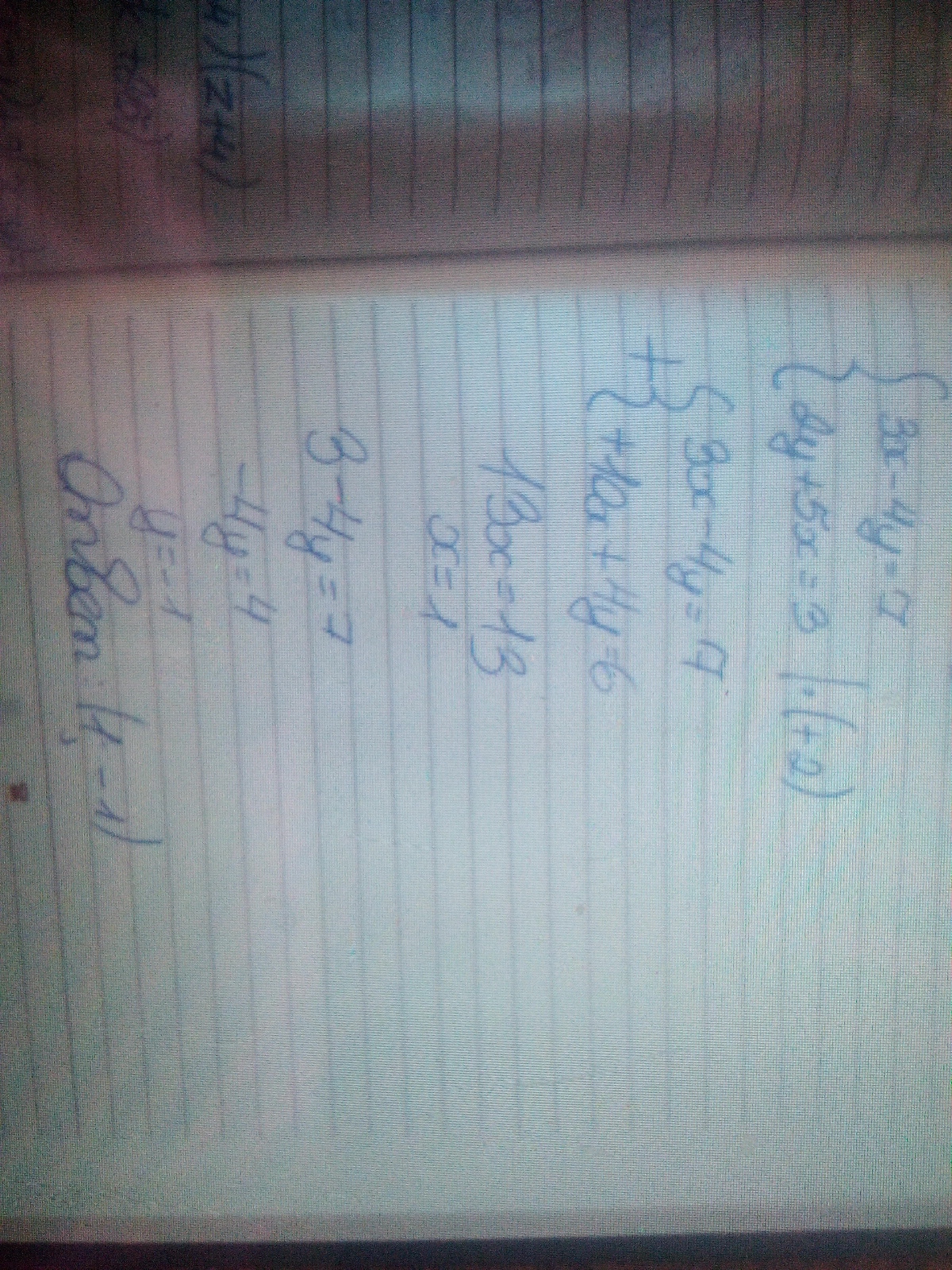 x=7-4y3; 2*y+5* 7-4y3-3=0; 6y+15*7-4y-3|3=0; 2y+102=0; y= -1022; y= -51