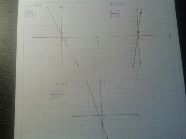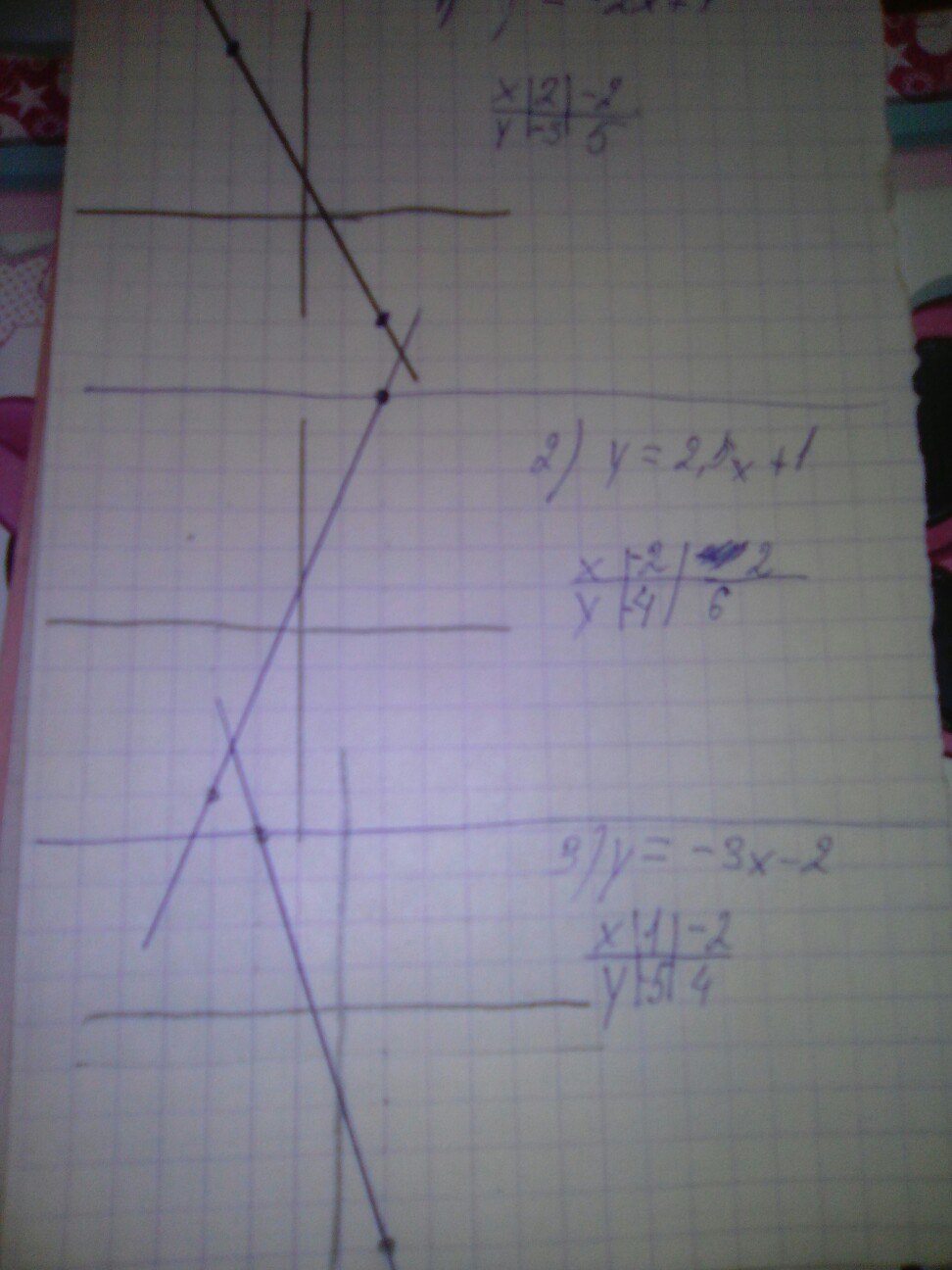 Начертите 3 графика функции: у=-2х+1; 2,5х+1; -3х-2.