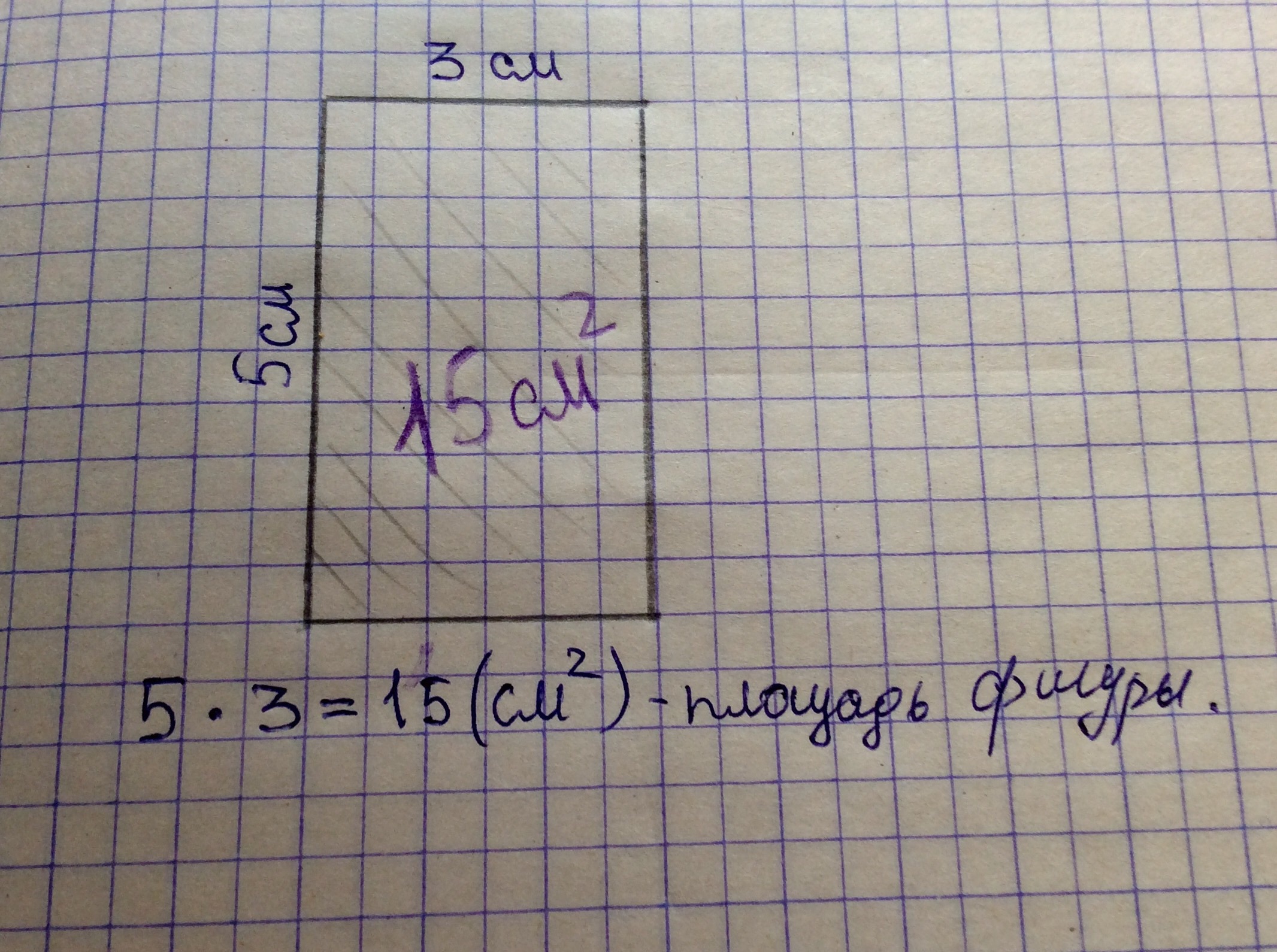 Прямоугольник, имеющий площадь 15см², а также длину 5см и ширину 3см.