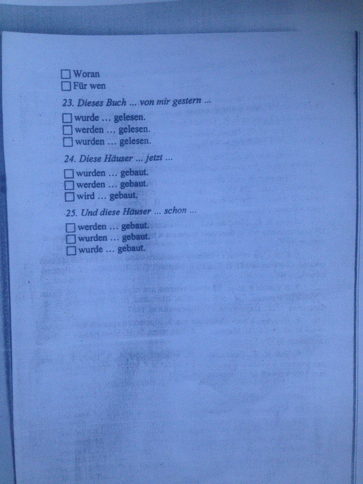 9 Bayern 10 тут все подходит, ну пиши Brandenburger Tor 11 eine der grössten und schönsten Strassen Berlins 12 Dresden 13 eine der bedeutesten Gemäldegalerien der Welt 14 ob ich in diesem Sommer viel gewandert bin 15 dass sie in diesen Sommerferien viel Sport getrieben hat. 16 Wenn der Winter kommt 17 Als mein Bruder klein war 18 Nachdem ich alles gekauft hatte 19 der neben diesem Mädchen sitzt 20 mit dem unser Lehrer spricht 21 dessen Hauptstadt Hannover heisst 22 an wen 23 wurde...gelesen 24 werden...gebaut 25 wurden...gebaut