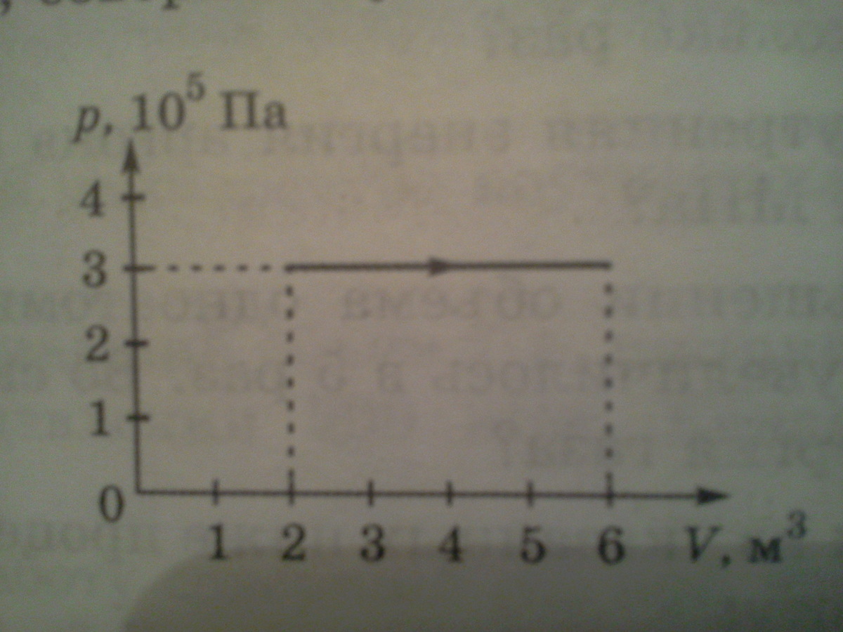 На рисунке показана изобара газа в координатах p, V. Опредилите работу, совершенную газом в процессе расширения.