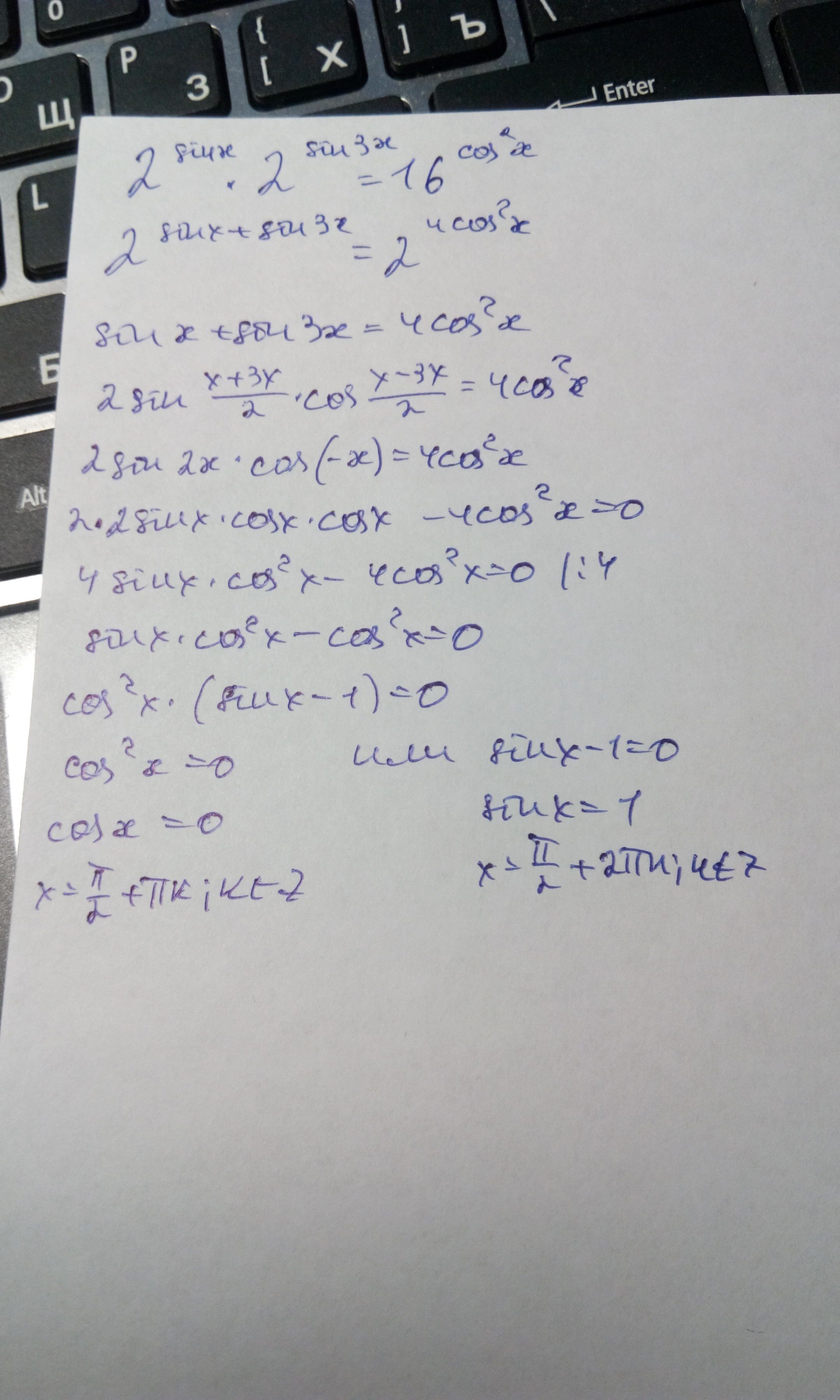 2^sin(x) * 2^sin(3x) = 16^cos^2 (x)