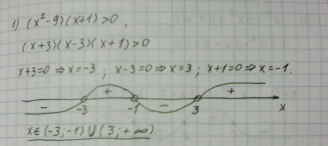 Решить неравенства методом интервалов с рисунком пожалуйста-