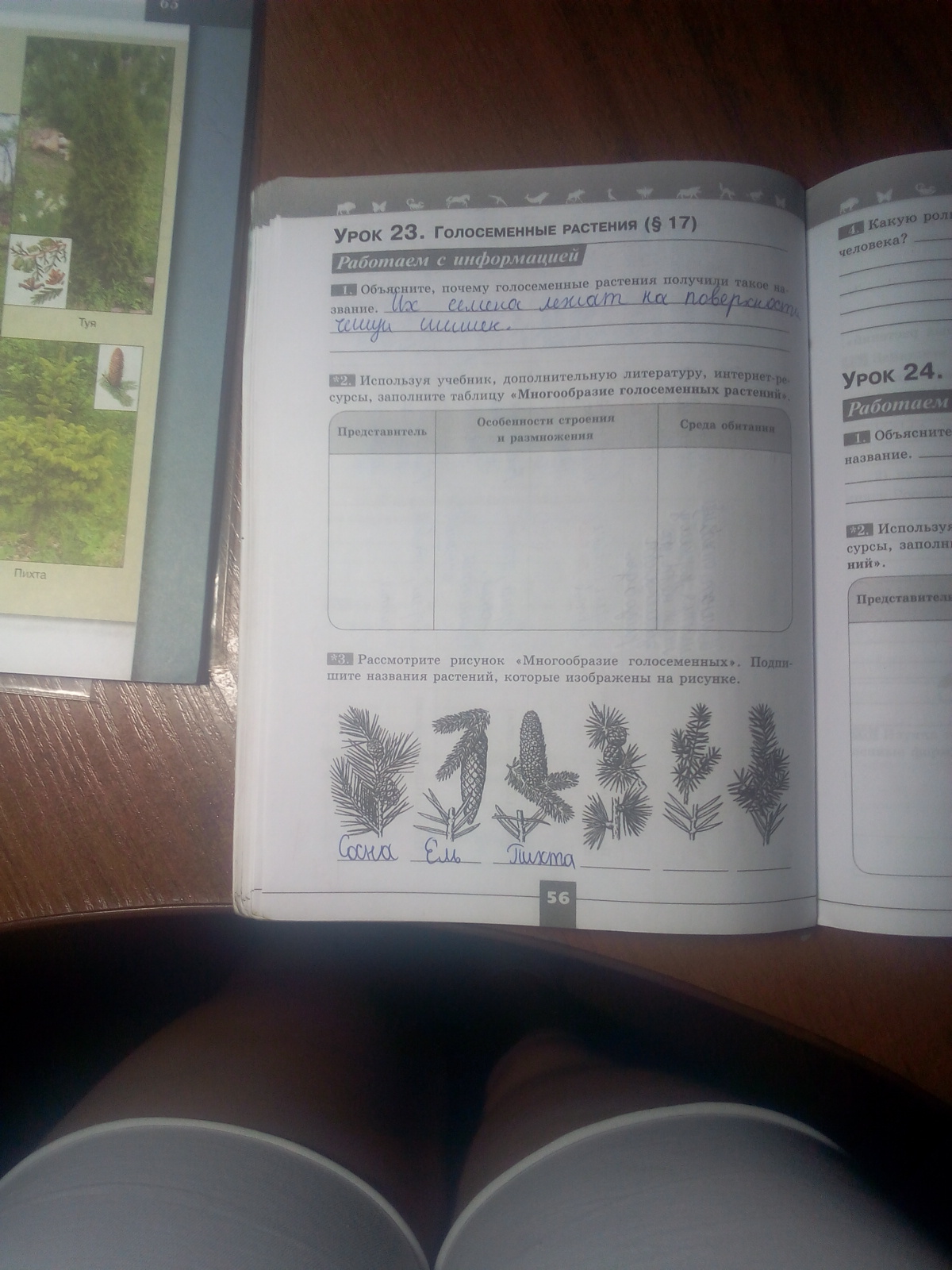 Во втором задании напиши характеристики деревьев ( ель, сосна, туя, пихта...). Характеристики растений есть в конце парашрафа, прочитай и наптши их