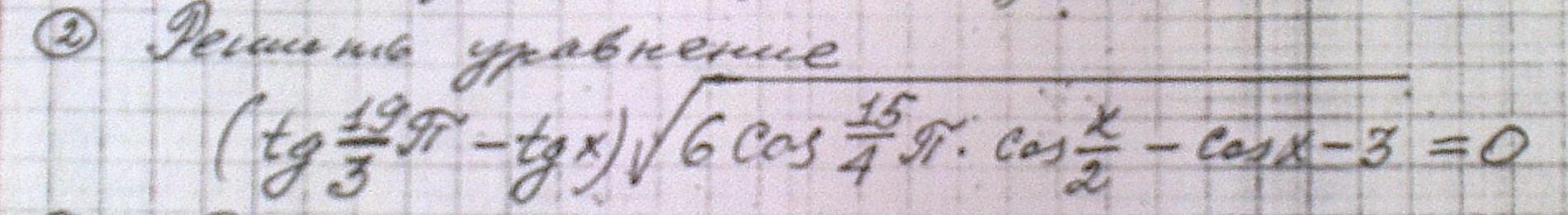 (tg19п/3 - tgx)√(6cos15п/4 * cos(x/2) - cosx -3) =0