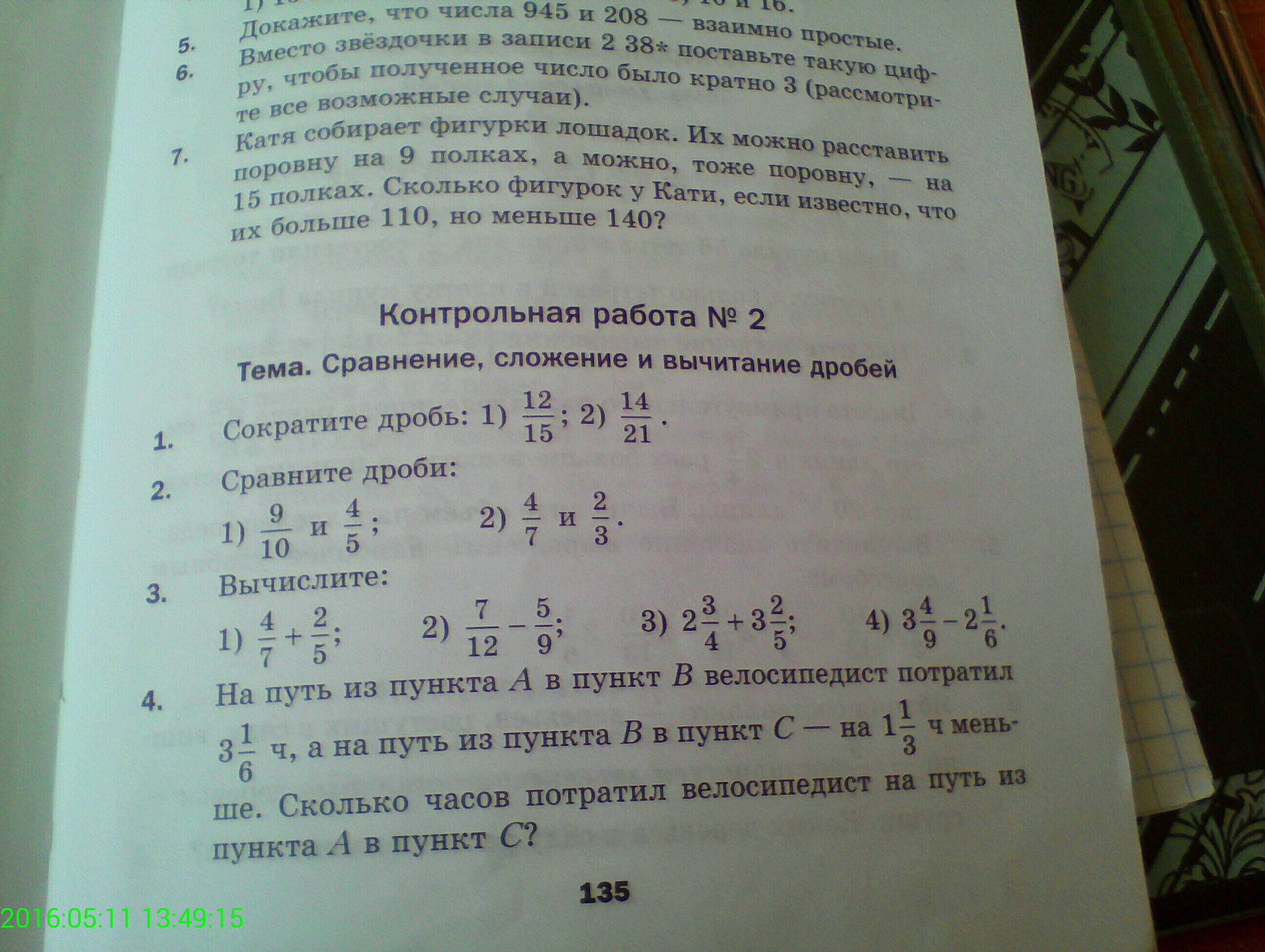 2). 3 1/6+ 1 5/6= 4 6/6=5 ч - потратил велосипедист на путь из п. А в п. С.