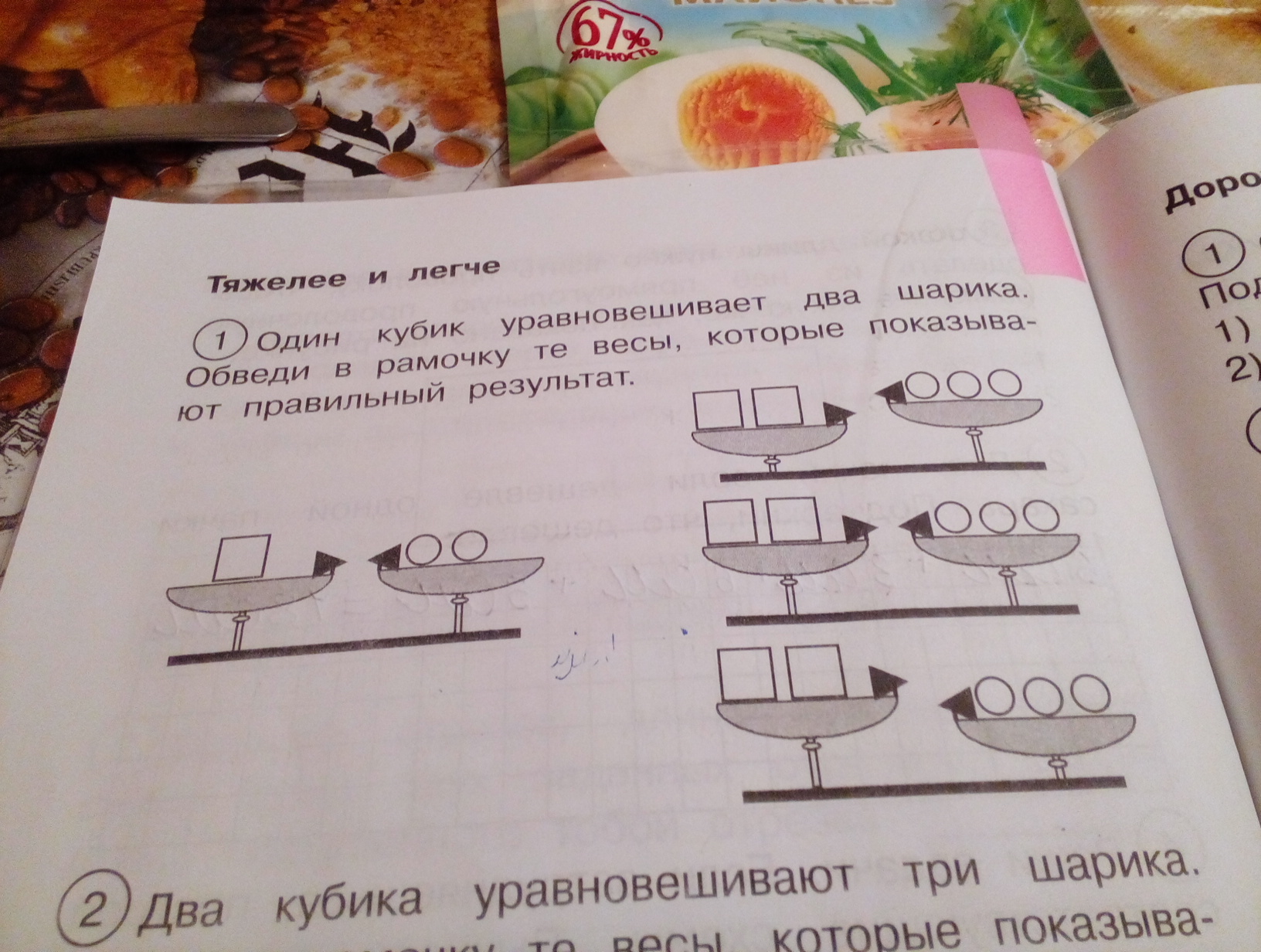 1рисунок потому, что 3 шарика это 1,5 кубика
