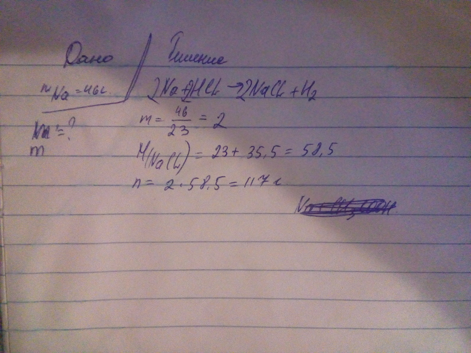 Какая масса(m) образуется в результате реакции 46 грамм натрия(Na) с соляной кислотой (HCL)?