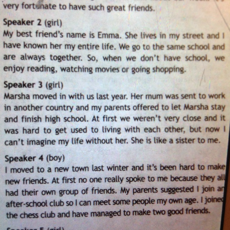 марша переехала с нами в прошлом году.ее маму отправили работать в другую страну и мои родители предложили позволить марша остаться и закончить старшую школу.в начале мы не были близки и было сложно привыкнуть жить друг с другом , но сейчас я не могу представить свою жизнь без нее. он как сестра мне