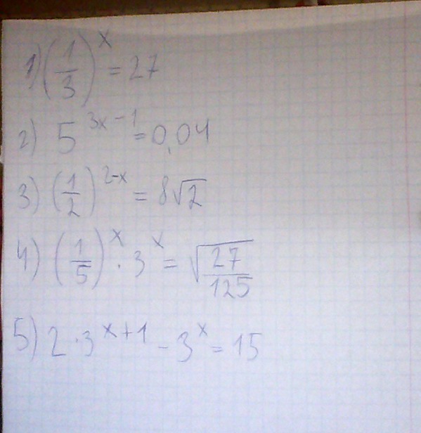 5).2·3ˣ·3-3ˣ=15, 3ˣ·(6-1)=15, 3ˣ=15/5=3