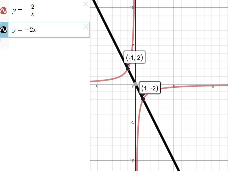 постройте график функциий y=-2:x и y=-2x укажите координаты точек пересечения этих графиков. если можно то сфоткайте прошу