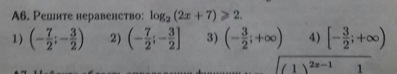 log₂(2x + 7) ≥ log₂4 Учитывая ОДЗ, возрастание нашей логарифмической функции, составим систему неравенств: