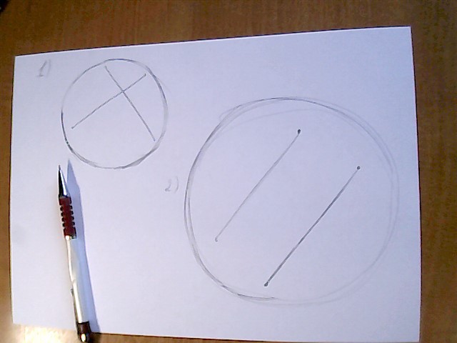 Начерти окружность любого радиуса не выполняет измерения проведи внутри окружности в два равных отрезка Покажи 2 решения