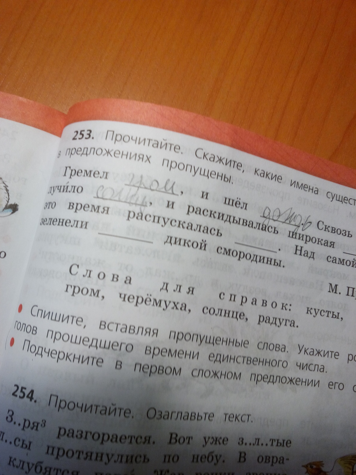 гром, дождь, солнце, радуга, черемуха, кусты.