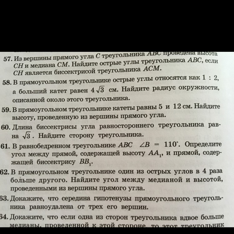 59. Площадь данного треугольника можно подсчитать двумя разными способами. Пусть a, b это катеты, c это гипотенуза, h - высота, проведенная к гипотенузе. Тогда