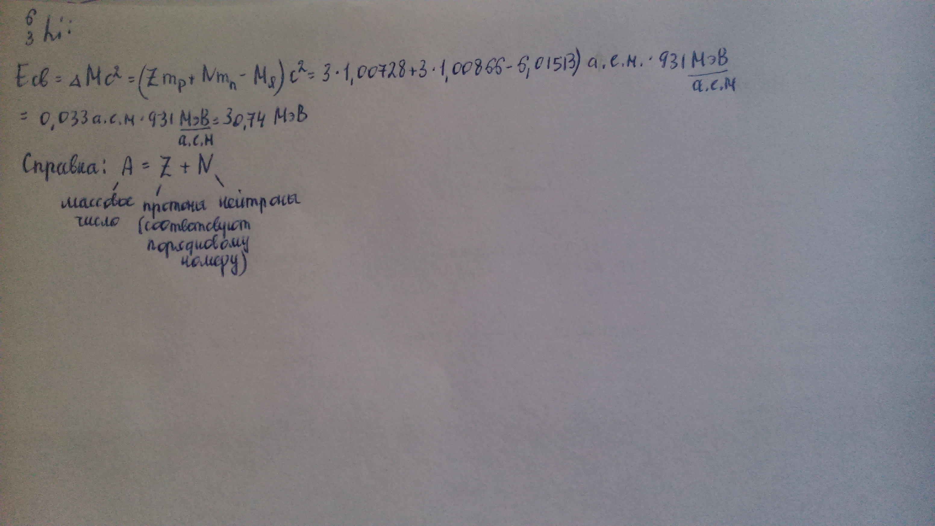Определить энергию связи ядра атома 6 li 3. Масса ядра лития приблизительно равна 6,0151 а.е.м.