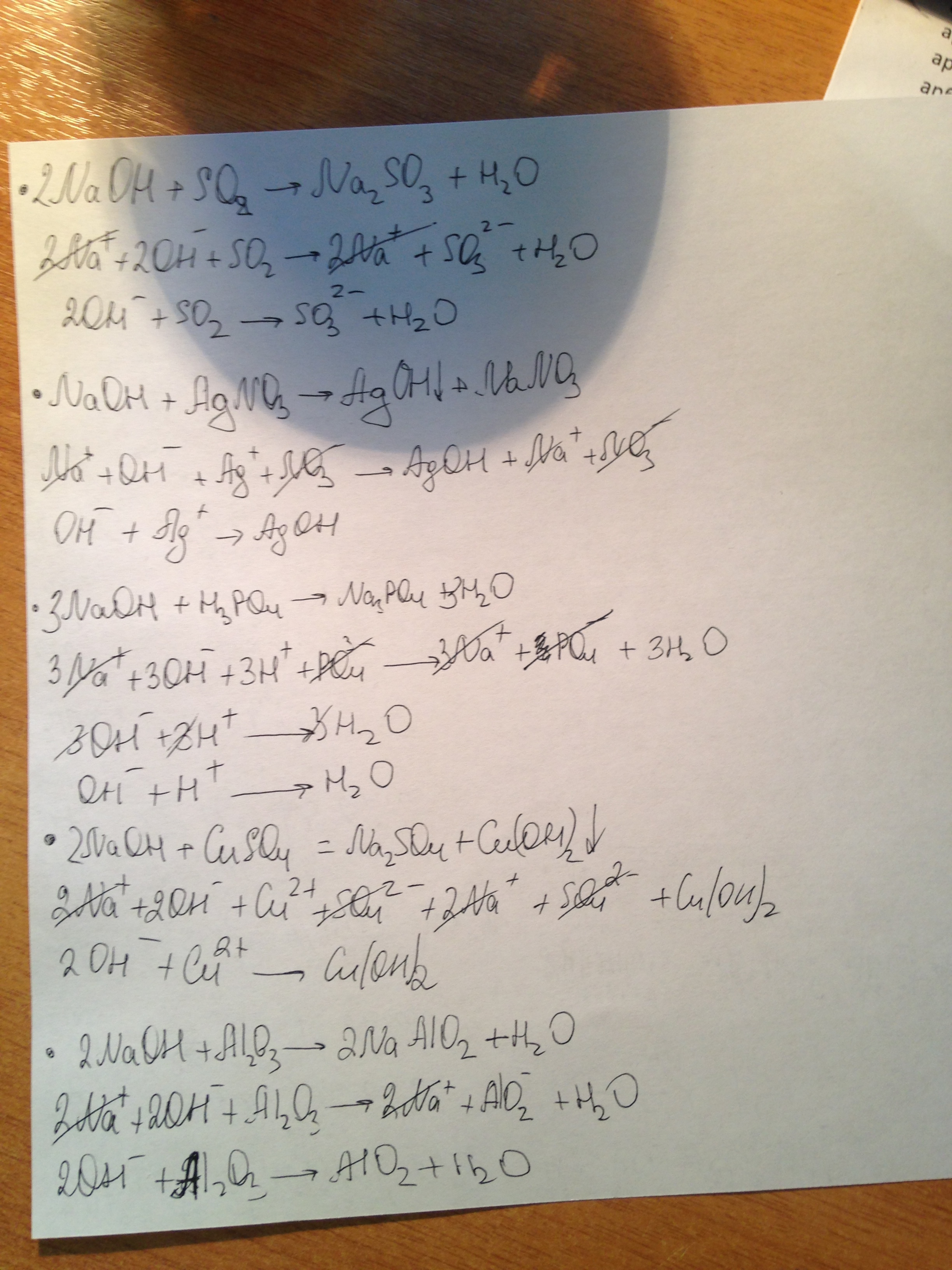C какими из перечисленных веществ будет реагировать гидроксид натрия: оксид калия, оксид серы 4, нитрат серебра, хлорид бария, гидроксид калия, фосфорная кислота, сульфат меди 2, оксид алюминия. Напишите соответствующие уравнения в молекулярном и ионном виде.