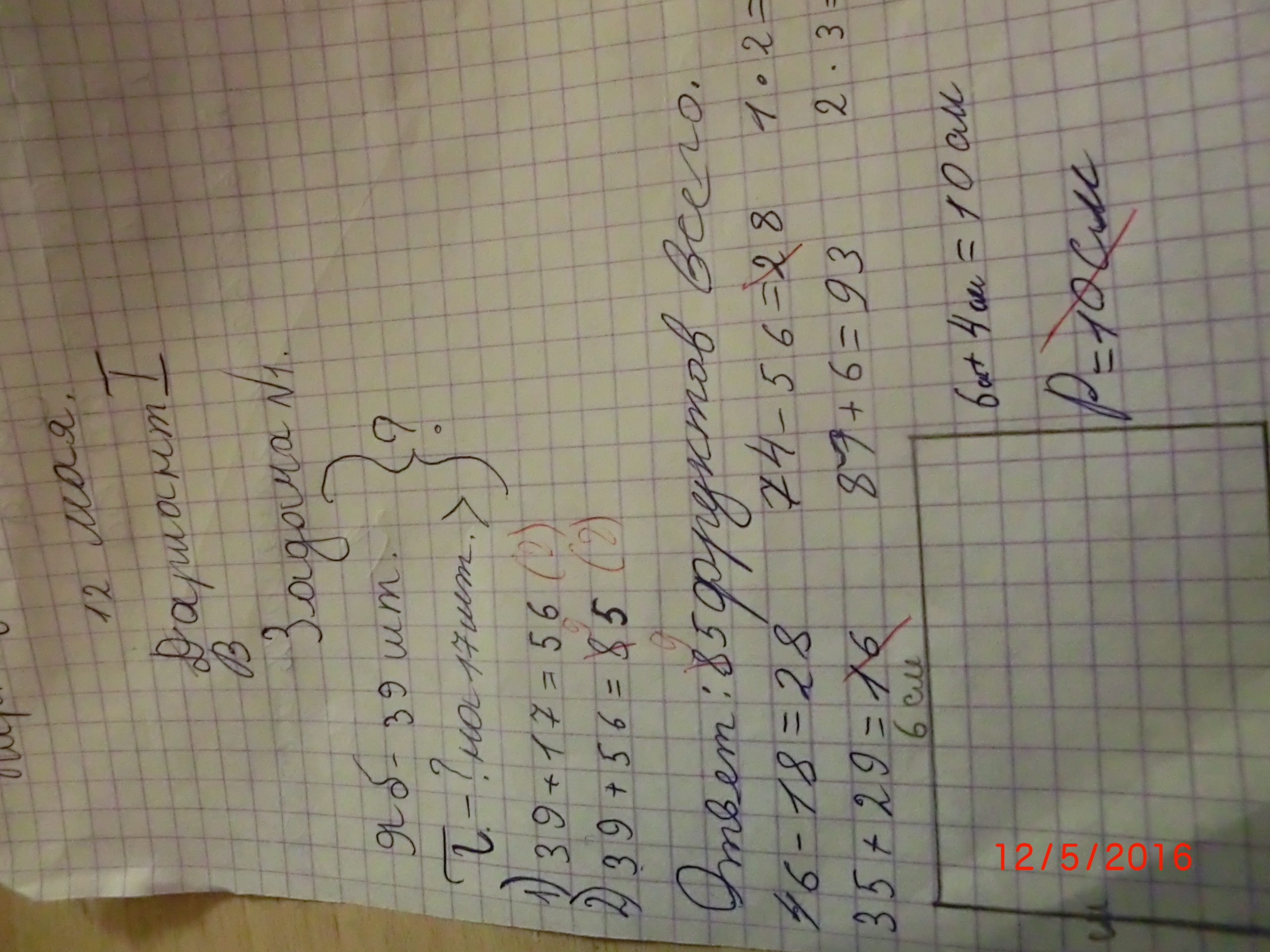 периметр не квадрата а четырёхугольника а решение такое
