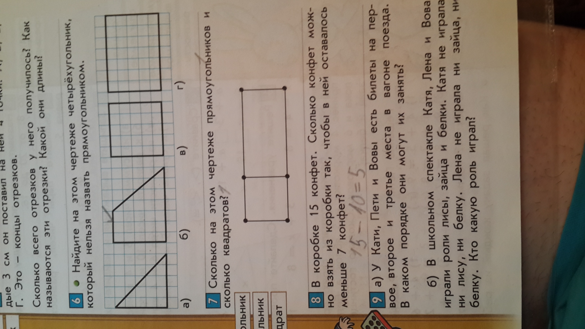 в 7 - 1 квадрат и 3 прямоугольника (вся фигура целиком, большая часть и квадрат(потому что это прямоугольник, у которого все стороны равны)