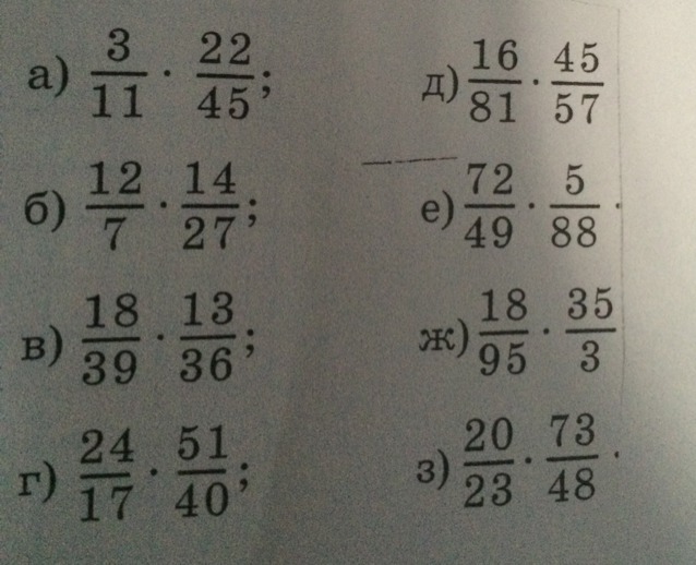 ж)18/95*35/3=6/95*35/1=6/19*7/1= (42/19 = 2 целых, 4/19