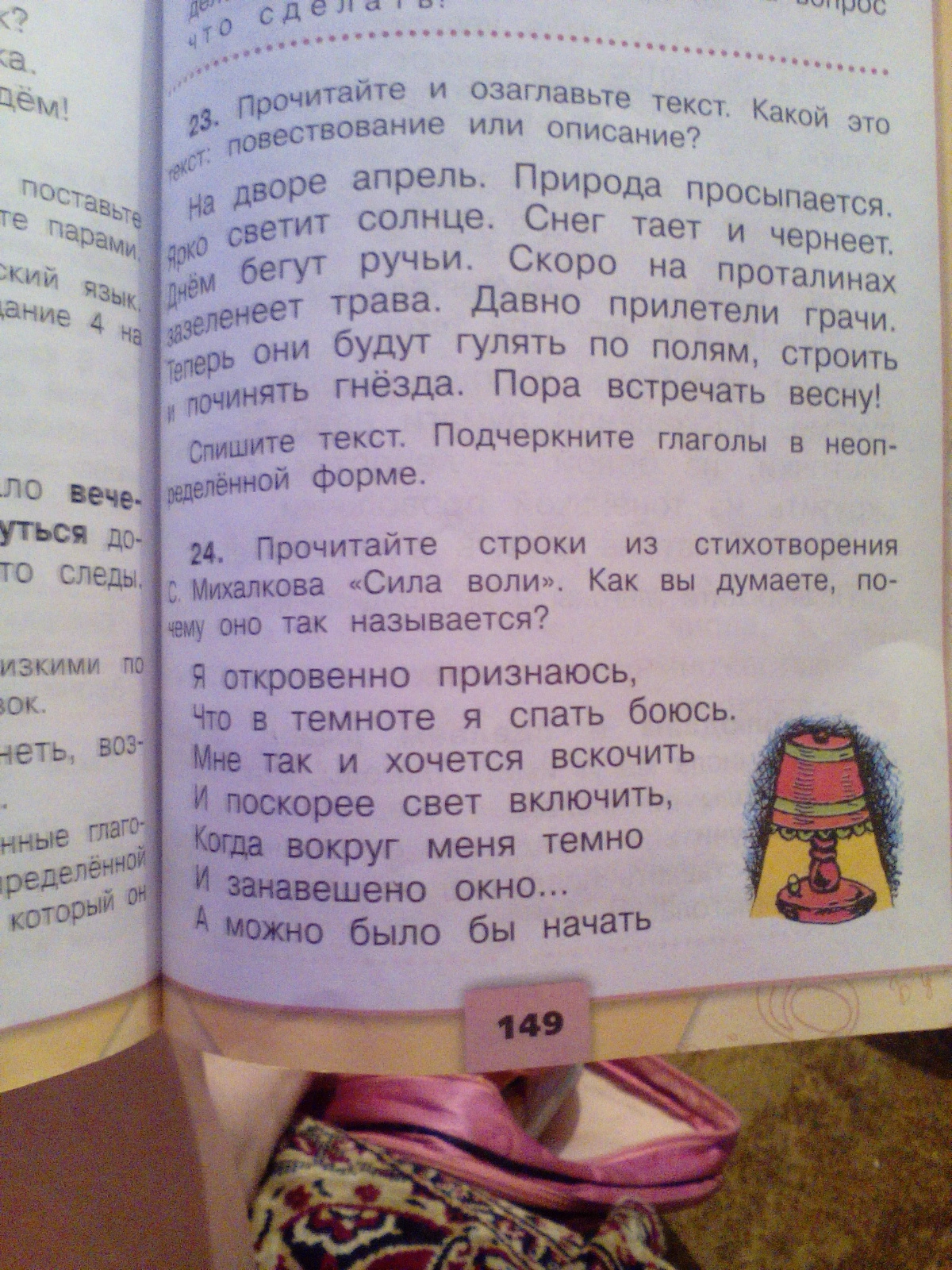Просыпается, светит, тает, чернеет, бегут, гулять, строить, встречать, починять, будут.
