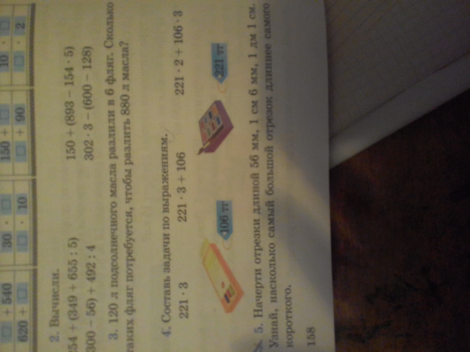 3) купили 3 пачки красок и 2 пачки фломастеров сколько потратили денег?