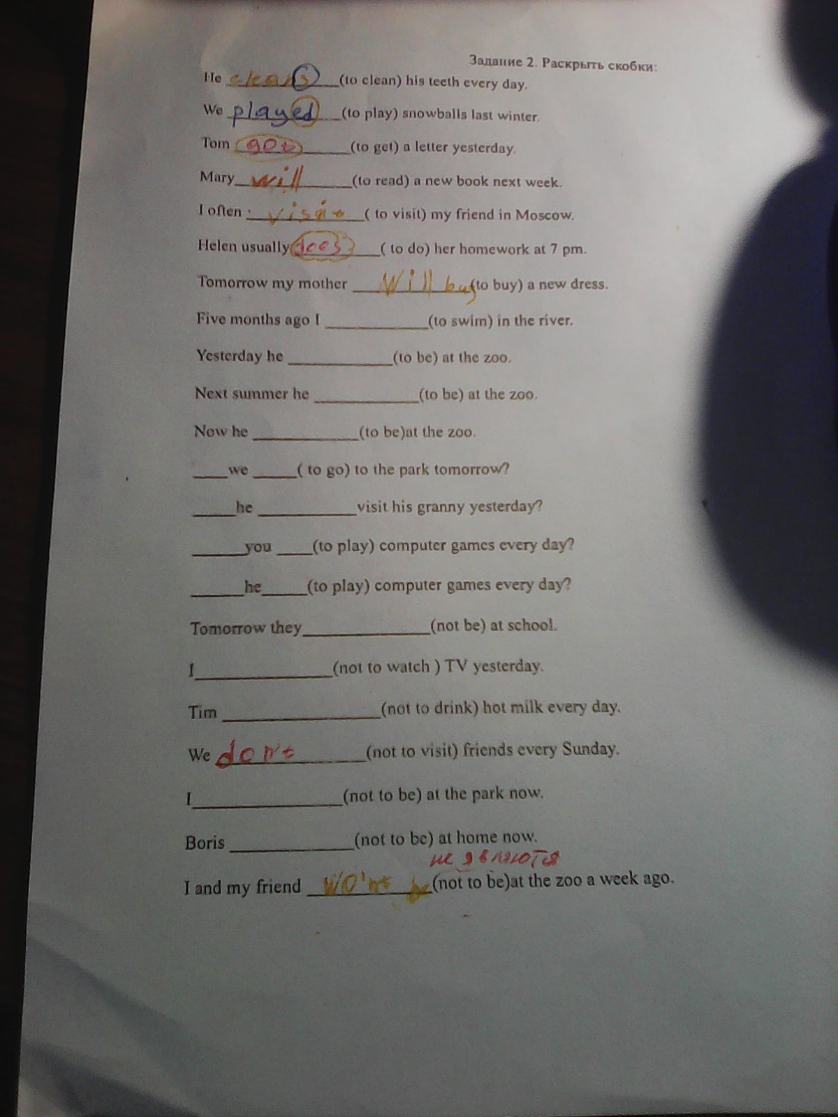 swam, was, will be, is, Will go, Did he visited, Do you play, Does he play, won't be, didn't watch, doesn't drink, dont visit, am not, is not,