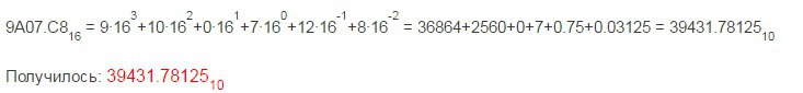 Короче, сначала над каждой цифрой ставишь ее номер (начиная с нуля и по возрастанию), начиная самой правой цифры целой части числа и идешь влево. А дробную часть начиная с её левой цифры ставишь ее номер (начиная с минус одного и по убыванию) и идешь в право. Потом каждую цифру числа умножаешь на основание системы счисления (у нас здесь 16) в степени номера этой цифры.