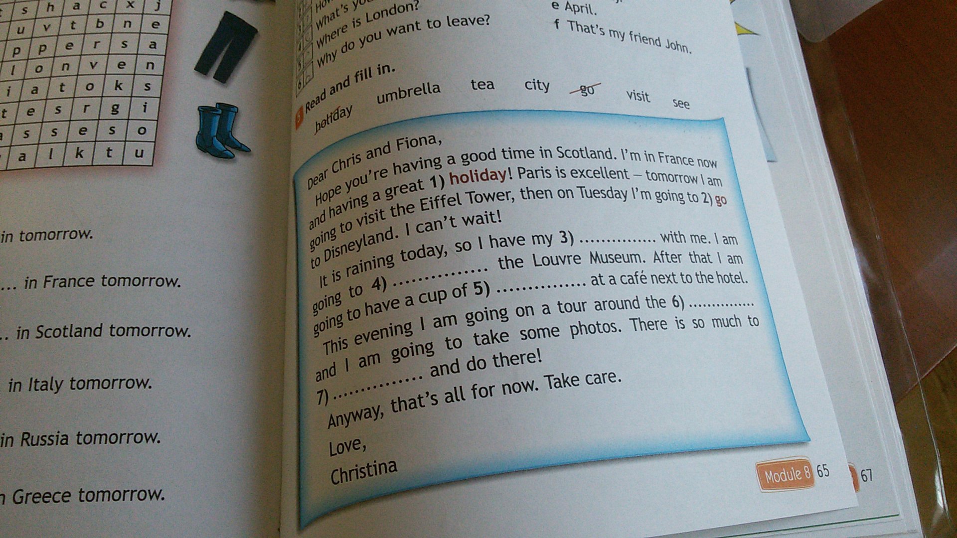 3. umbrella 4.visit 5. tea 6.city 7.see