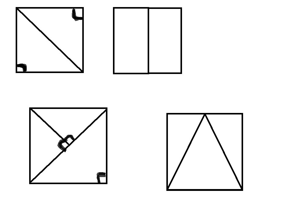 Как составить квадрат из: двух прямоугольных треугольников; 2 прямоугольников; 3 прямоугольных треугольнико; 3 треугольников
