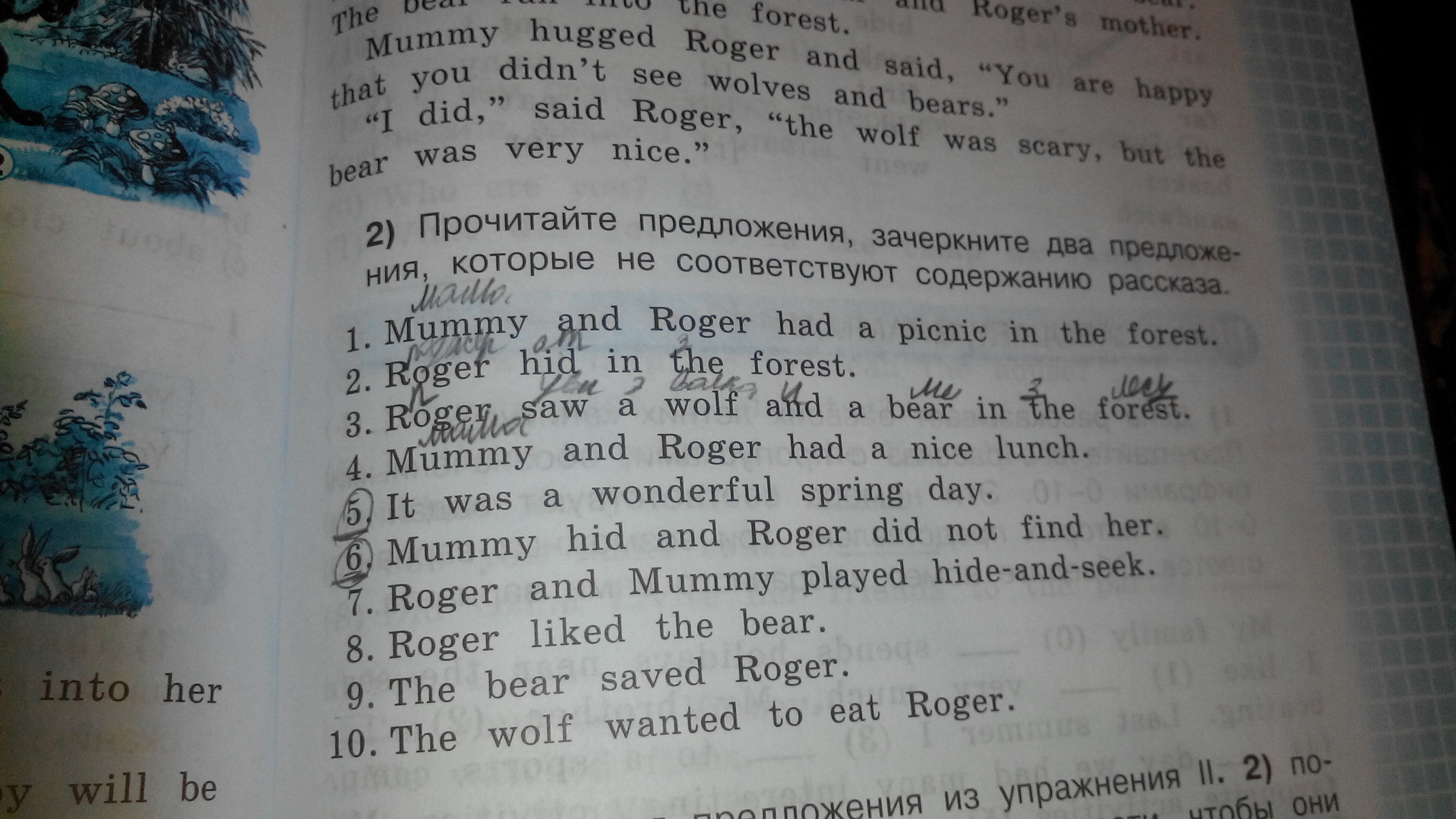 3.Роджер увидел волка и медведя в лесу.