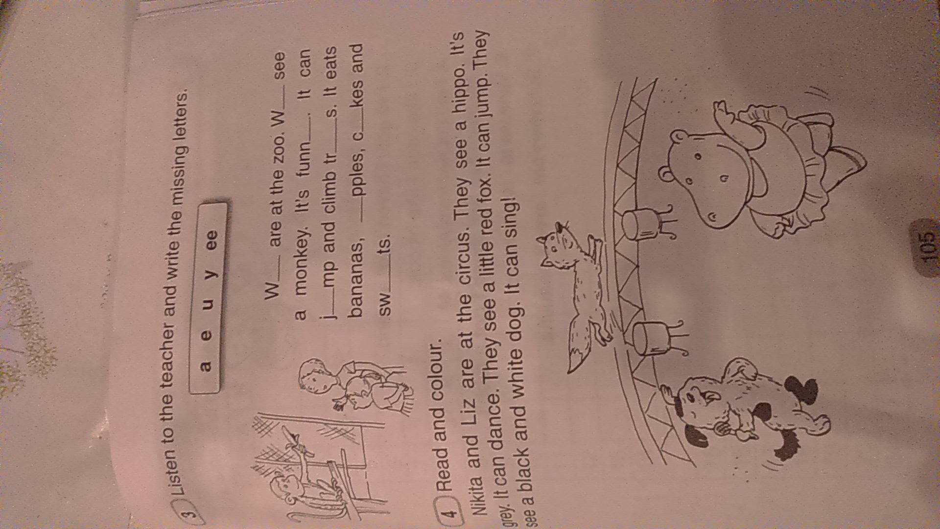 Перевод:Мы в зоопарке.Мы видим обезьяну.Она забавная.Она может прыгать и лазать по деревьям.Она есть бананы,торты и конфеты.