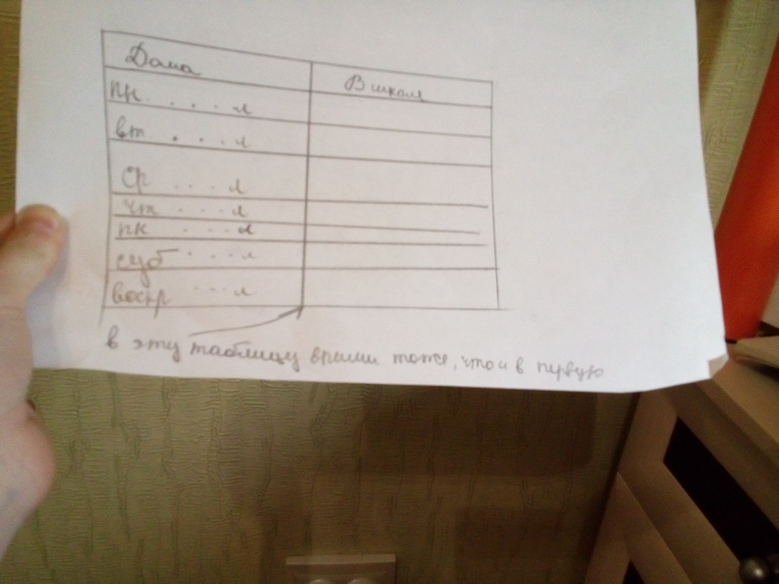 В таблицу про школу впиши тоже, что и про дом