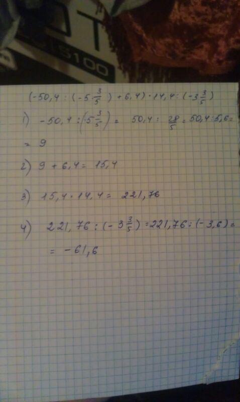 найдите значение выражения (-50.4:(-5 3/5)+6,4)*14,4:(-3 3/5)=-61,6