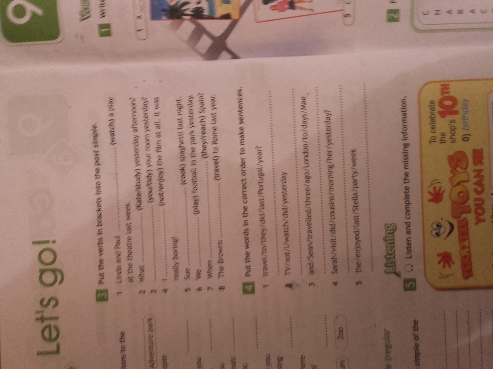 1did they travel to portugal last year 2i didn't watch tv yesterday 3mae and sean travelled to london three days ago 4did sarah visit her cousins yesterday morning 5stella enjoyed the party last week