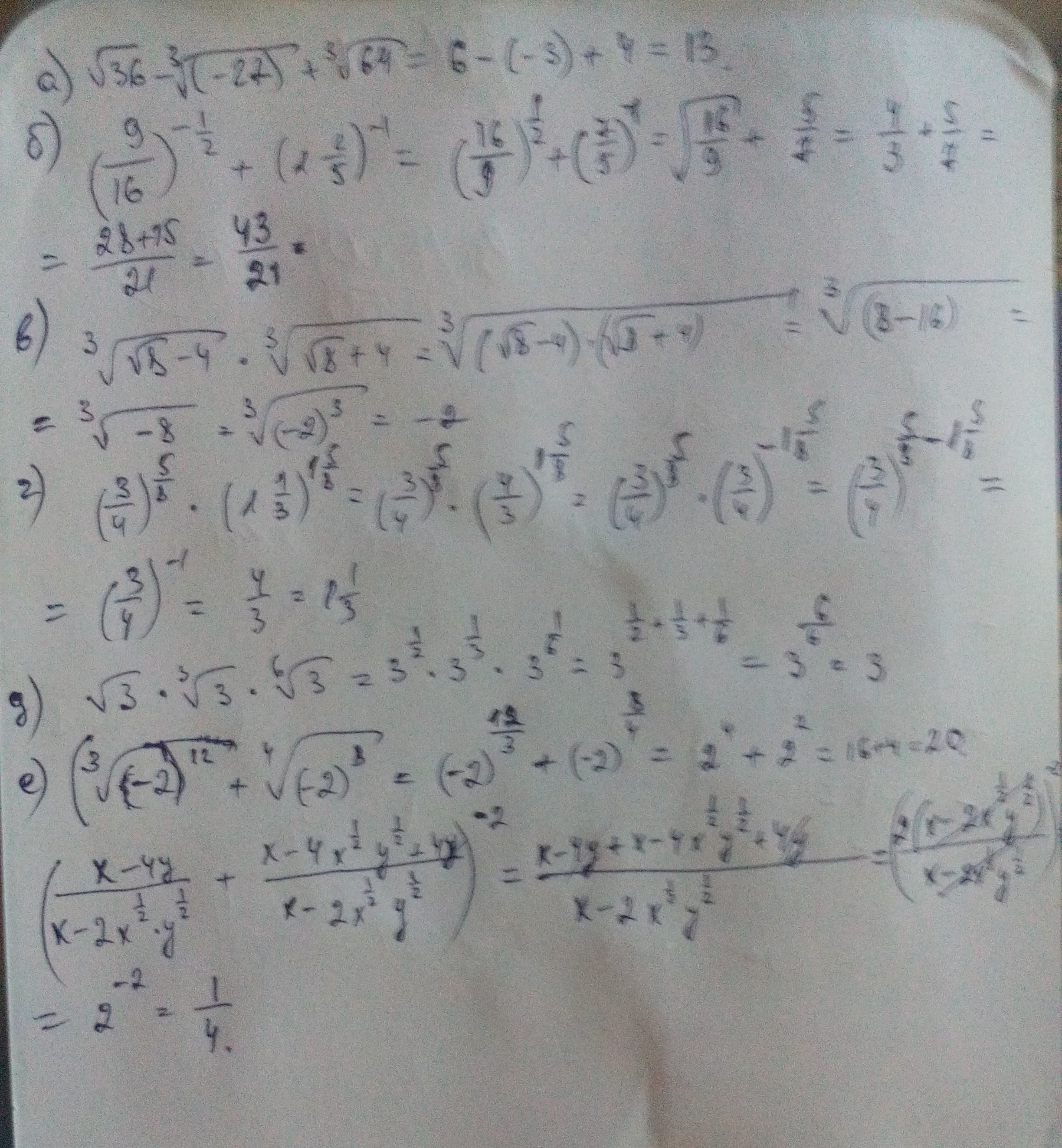 √6² - 3√(-3)³ + 3√4³=