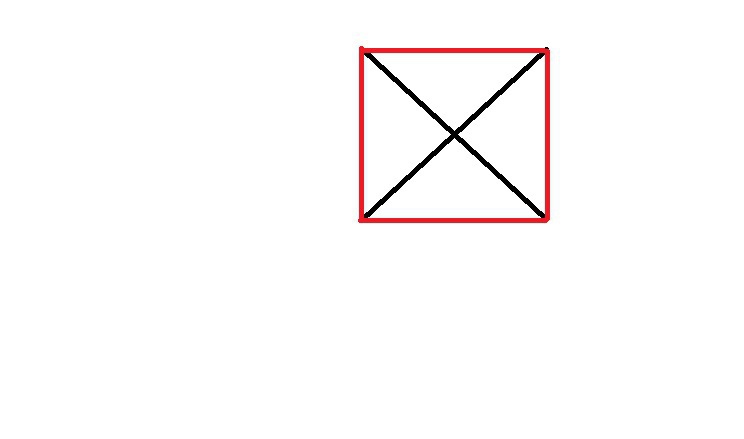 изобрози квадрат,если на чертеже даны его диагонали. в полученном квадрате стороны выдели карандашом одного цвета