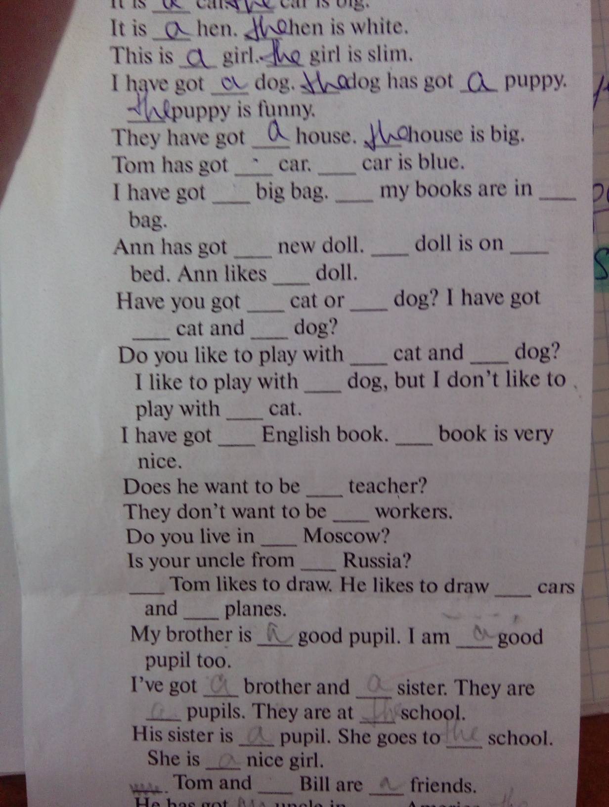4)Have you got a car or a dog? I have got a cat and a dog?
