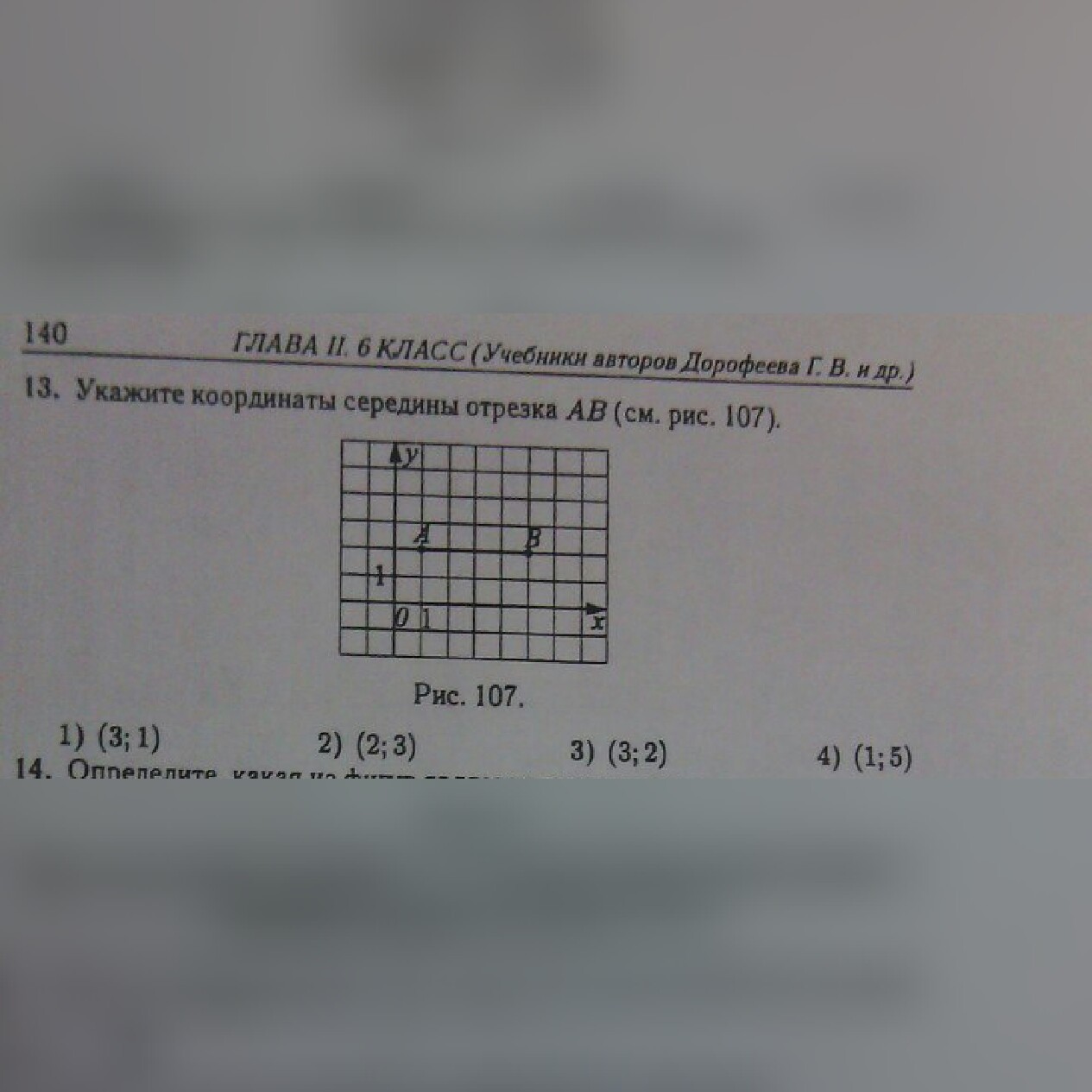 находишь середину отрезка АБ и опускаешь вниз на ось х - это 3, влево - на ось у - это 2.