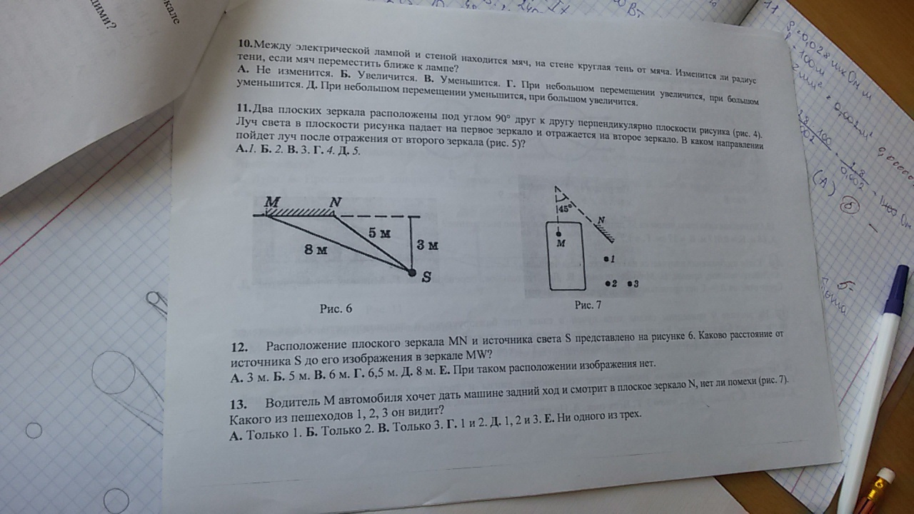 13- Д. Человек 1,2 лежат на линии отражения от зеркала и попадают в точку М так что угол падения + угол отражения равне 90°. человек 3 находится не на большом растоянии от 2 поэтому если сместить падающий луч от точки М до края зеркала, отраженный луч попадет в точку 3.