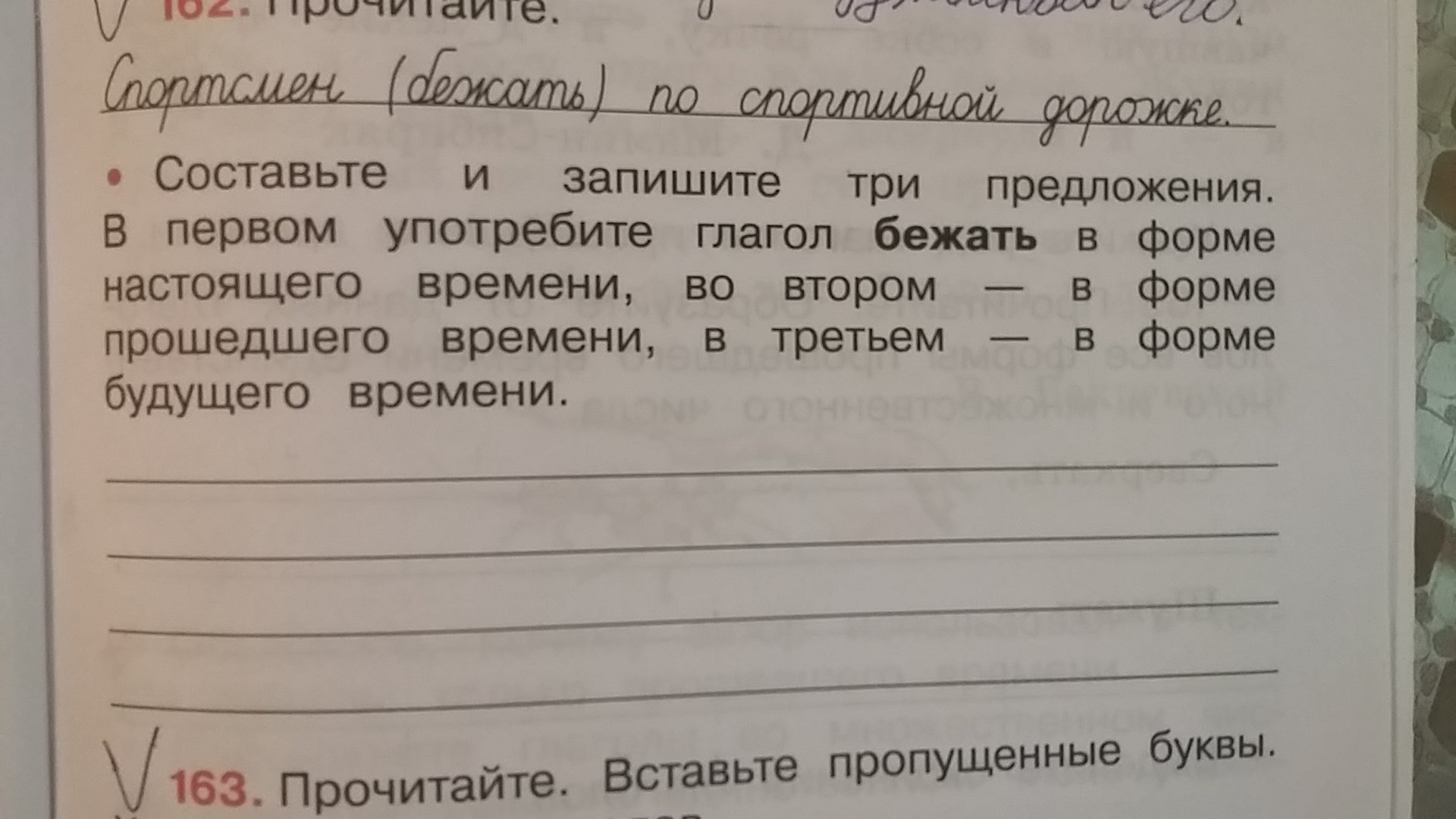 Прочитайте. Составьте и запишите три предложения. В первом употребите глагол бежать в форменастоящего времени, во втором в форме прошедщего времени, в третьем в форме будущего времени.